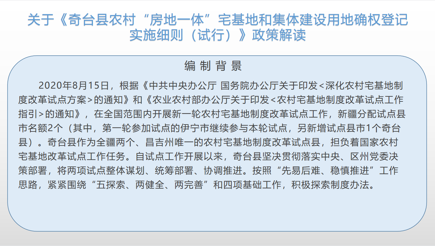 【图片解读】关于《奇台县农村“房地一体”宅基地和集体建设用地确权登记实施细则(试行)》政策解读