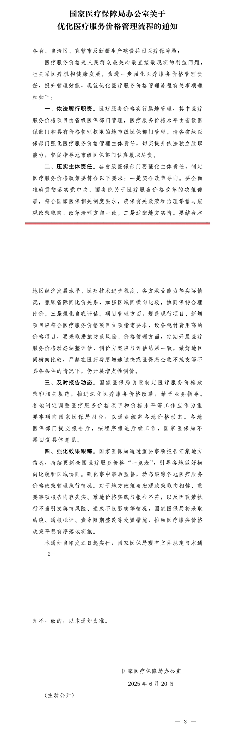 国家医疗保障局办公室关于优化医疗服务价格管理流程的通知